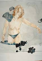 Entspannen, 2004, Offs.-Lithografie auf Bütten, manuell mit Kreide und Farbstiften coloriert,