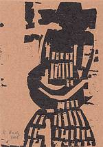 Kleidfigur, 2005, 1-farbiger Holzschnitt auf Packstoff,