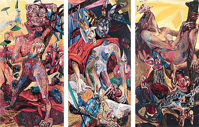 Tarot der Europa1998Acryl auf Leinwand200 x 330 cm(je 200 x 110 cm)